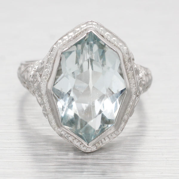 | Aquamarine: | Color: Transparent Cyan Blue Clarity: Minor Inclusions Measurements: 14.88 x 9.54 x 6.78 mm Cut Shape: Octagonal Marquise Stone Count: One (1) |