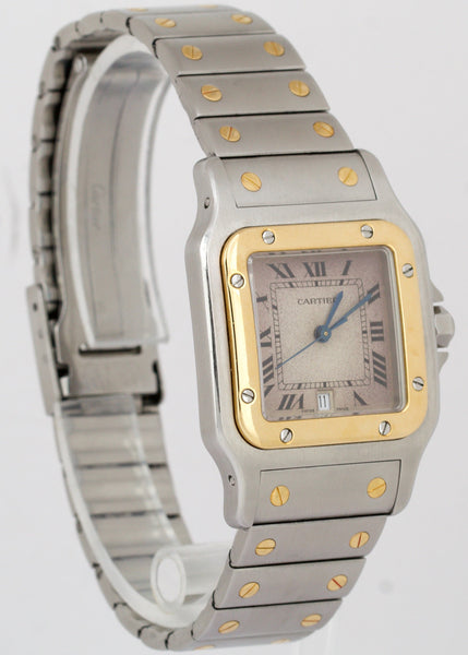 PAPERS Ladies Cartier Santos Galbee 29mm Roman 18K Gold Steel Quartz 187901 BOX