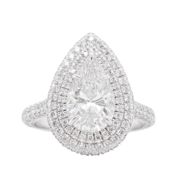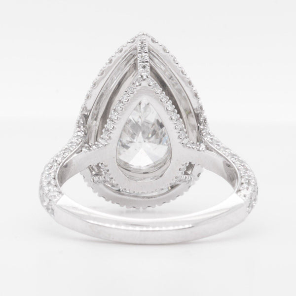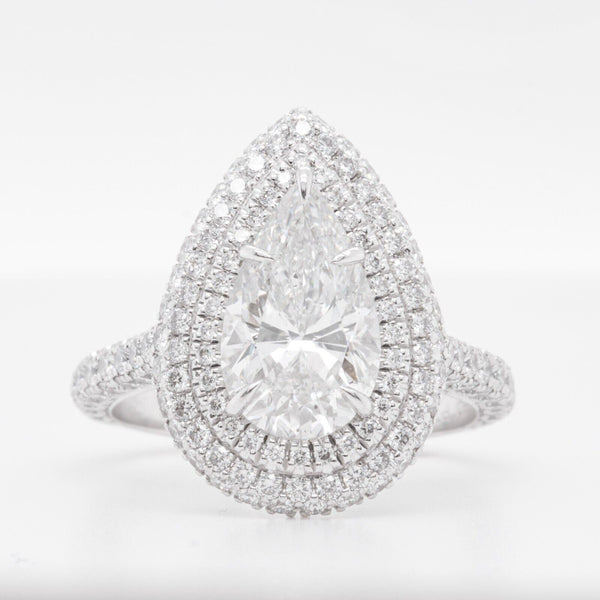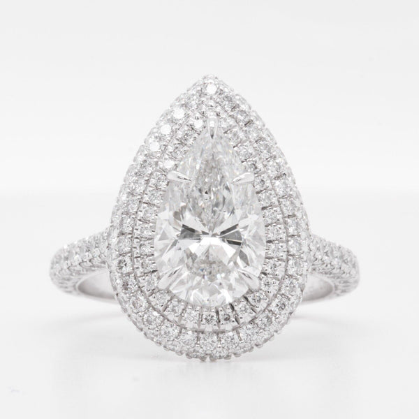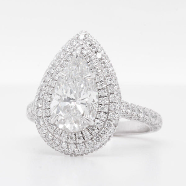 Platinum 950 GIA Pear Diamond G SI2 Double Halo Engagement Ring 3.98ctw Size 6