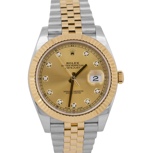 Rolex DateJust 41 CHAMPAGNE DIAMOND 18K Gold Steel 41mm JUBILEE Fluted 126333