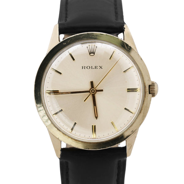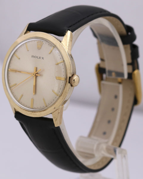 VINTAGE Rolex 7002 35mm 14K Yellow Gold Filled Silver Leather Presentation Watch