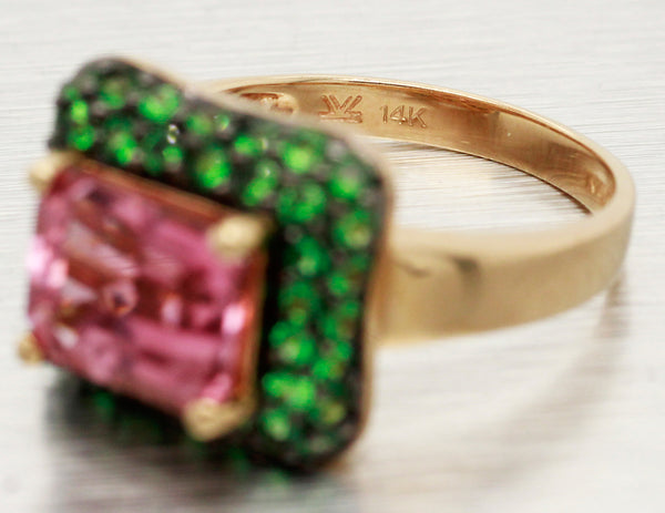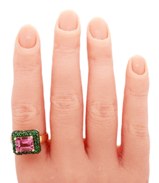 LeVian Pink Quartz & Tsavorite Cocktail Ring - 14k Yellow Gold Band