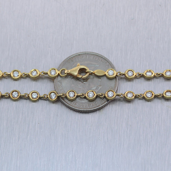 For your consideration, an authentic 18k Yellow Gold 3.75ctw Diamonds By The Yard 16" Necklace. This piece will come in a lovely jewelry box for a perfect presentation and our unconditional 30 day money back return policy. A3
