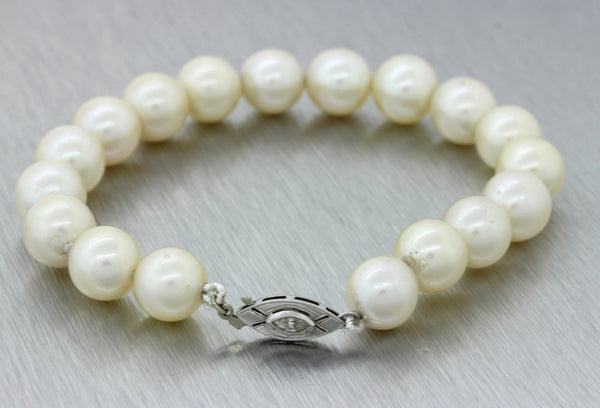 This is a beautiful 1940s Antique Art Deco Estate Solid Platinum 9-10mm Pearl 7.5" Bracelet 24.4g. It will come professionally packaged in a Collectors Coins & Jewelry gift presentation box and with our unconditional 30 day money back guarantee.