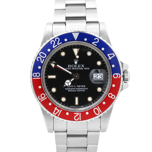 1984 VINTAGE Rolex GMT-Master GLOSSY PATINA Blue Red PEPSI Steel Date 16750