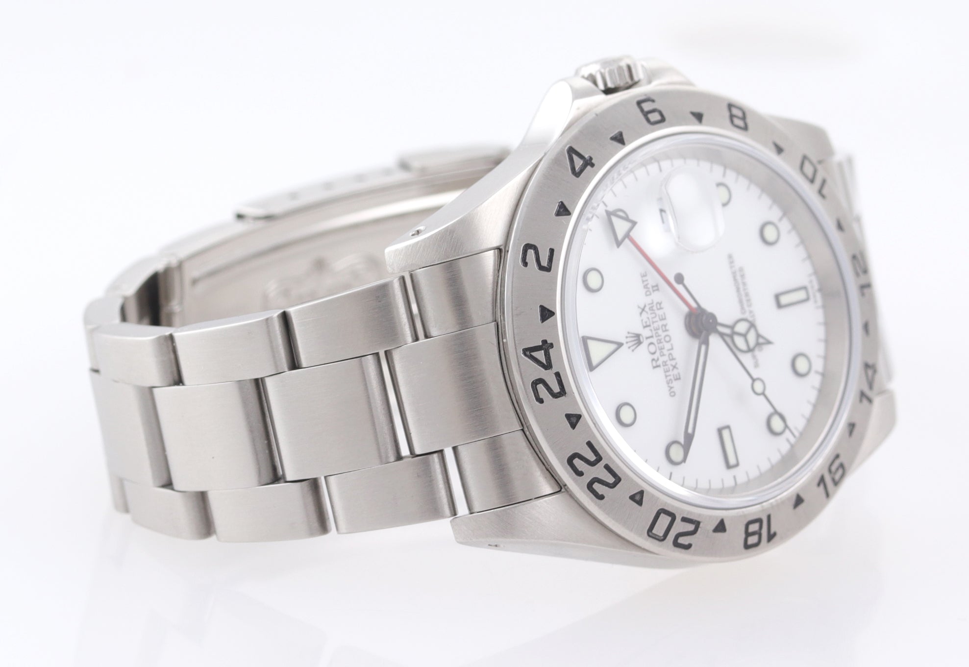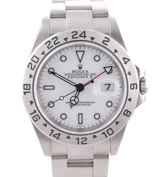 MINT Rolex Explorer II 16570 Stainless Steel White Polar GMT SEL 40mm Watch.