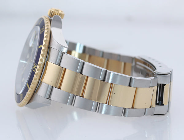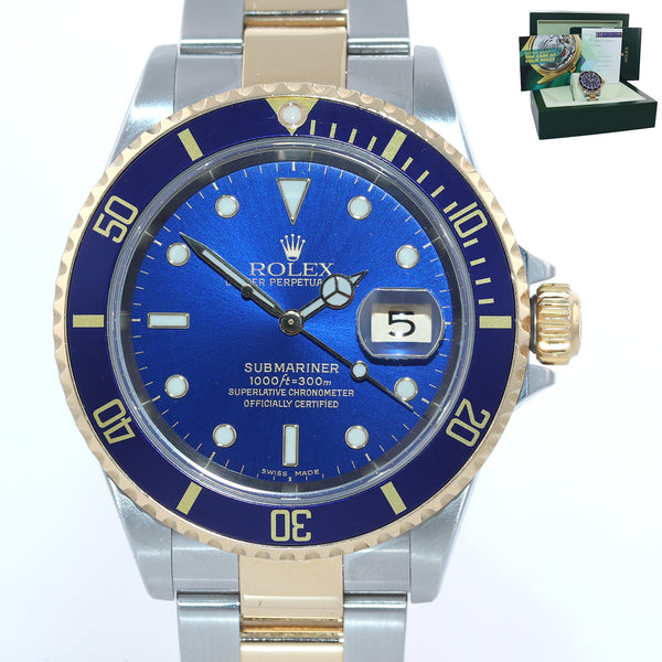PAPERS 2003 MINT Rolex Submariner 16613 Two Tone Steel 18k Gold Blue Dive Watch Box