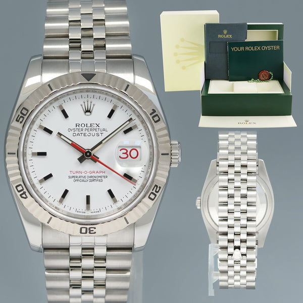 | Bezel | Rolex Bidirectional Rotatable White Gold 60-Minute Graduated Fluted Bezel |