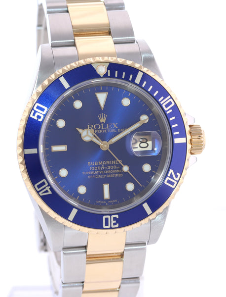 Rolex Submariner 16613 Two Tone Steel 18k Gold Blue Dial SEL 40mm No Holes Watch