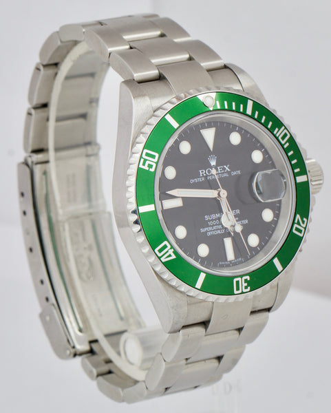 2007 UNPOLISHED Rolex Submariner Date Green 40MM KERMIT 16610 LV Stainless Watch