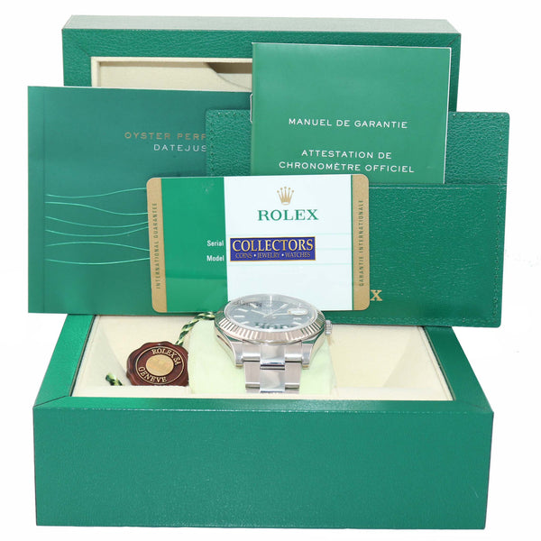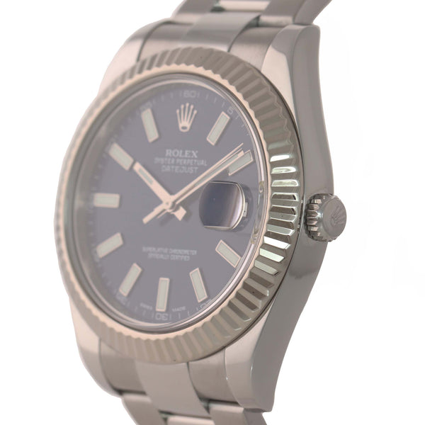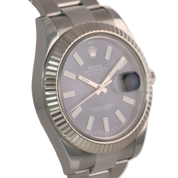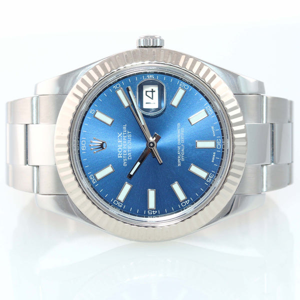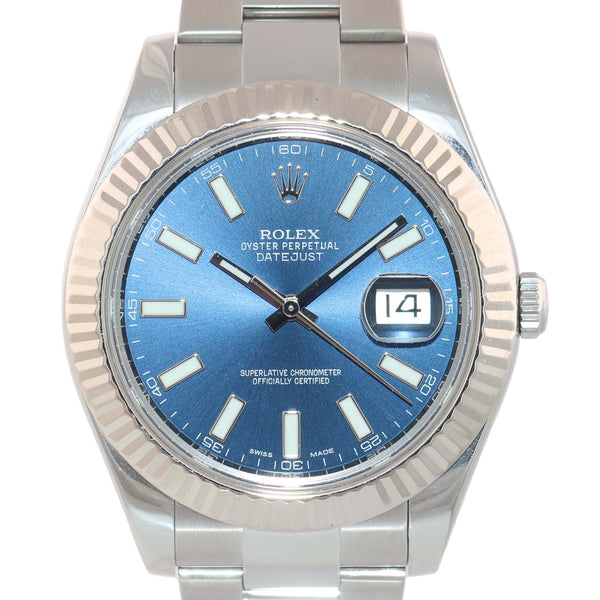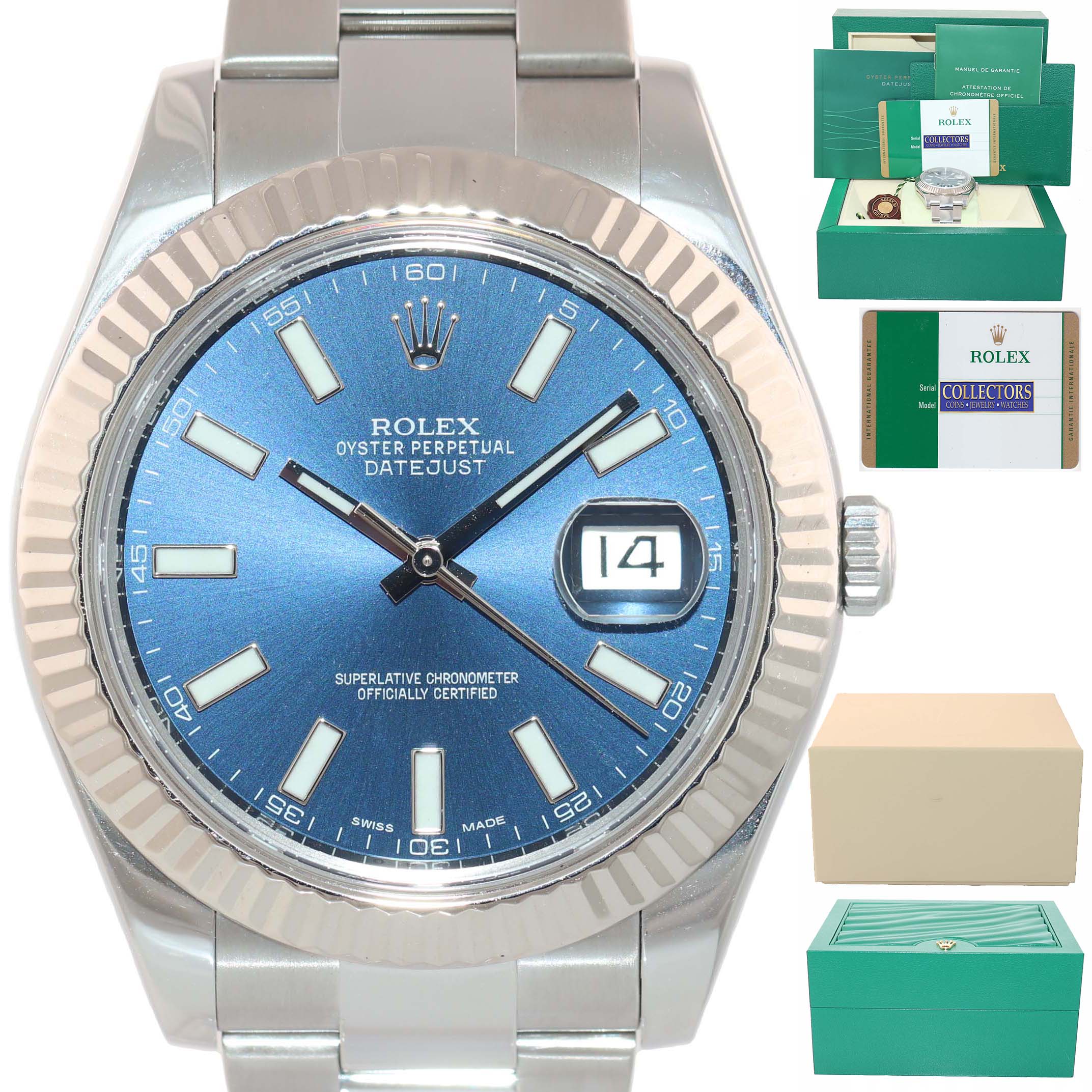 MINT 2016 PAPERS Rolex Datejust II Blue 41mm 18k White Gold Fluted Bezel Stainless Steel 116334 Watch Box