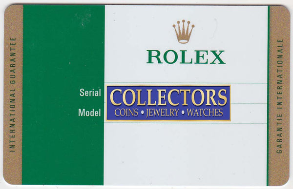 | Papers | Yes, this item will include the ORIGINAL ROLEX WARRANTY CARD & a Collectors Coins & Jewelry certificate of appraisal and authenticity as per buyer request. |