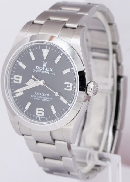 2017 Rolex Explorer I Black 39mm Stainless Steel FULL LUME MK2 Watch 214270 B+P