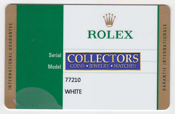 | Papers | Yes, this item will include ORIGINAL Rolex Warranty Card and a Collectors Coins & Jewelry certificate of appraisal and authenticity as per buyer request. |
