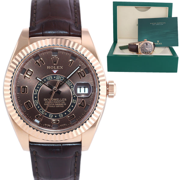 Rolex Sky-Dweller 18K Rose Gold 326135 42mm Chocolate Arabic Dial Leather Watch Box