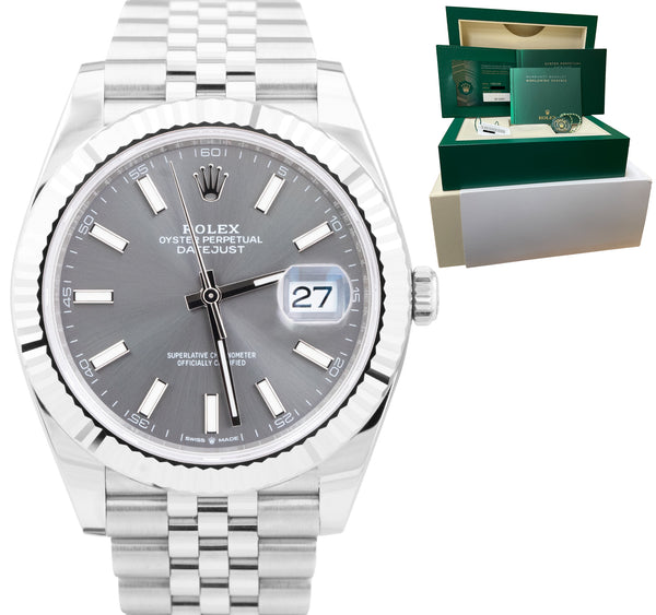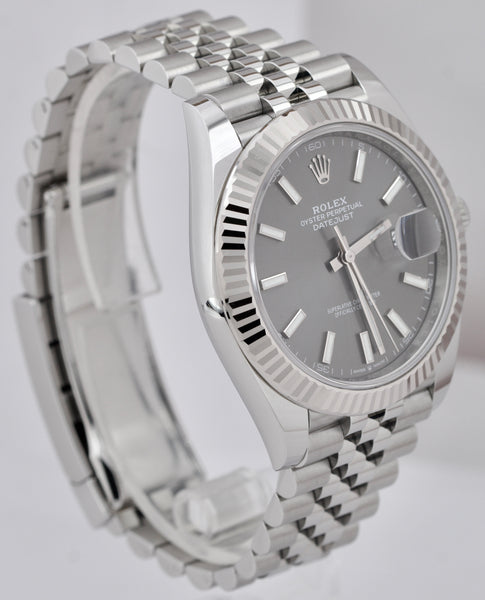 2021 Rolex DateJust 41 Rhodium Slate Fluted Stainless Oyster Watch 126334 B+P