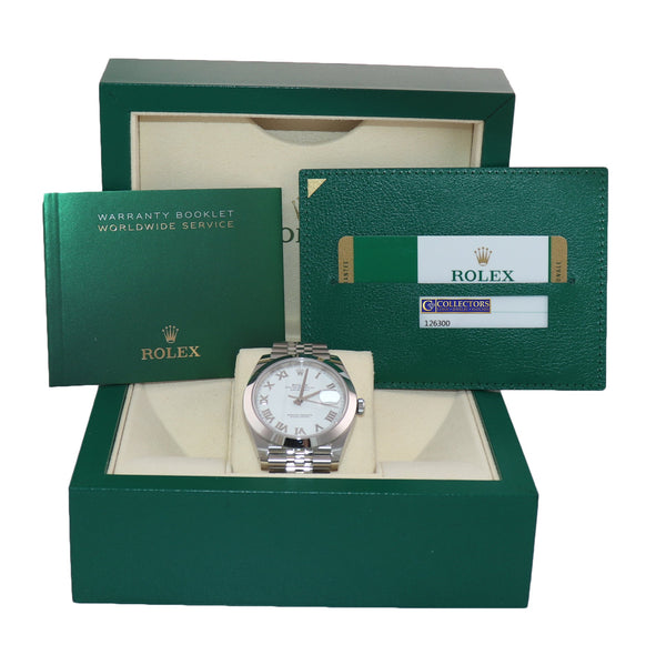 PAPERS Rolex DateJust 41 Steel 126300 White Roman Jubilee Watch