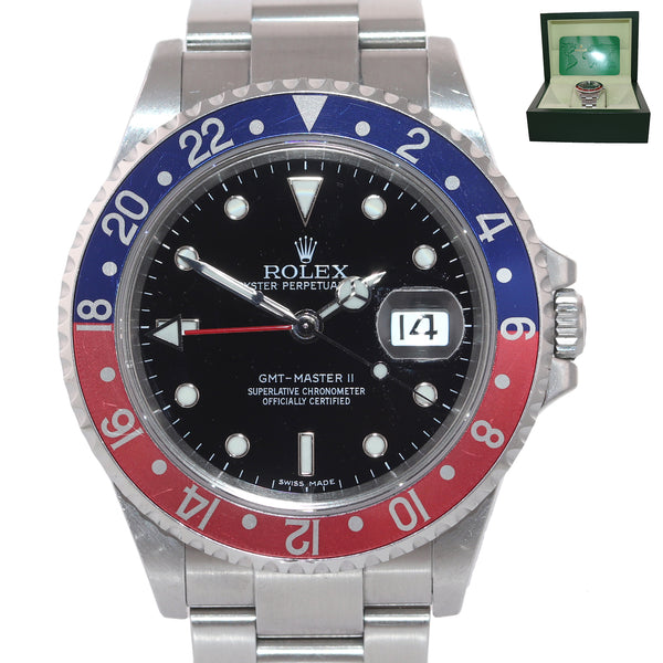 UNPOLISHED Rolex GMT-Master II Pepsi Steel Blue 16710 40mm Error Stick Dial Watch