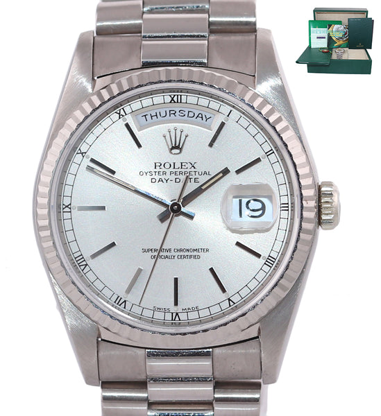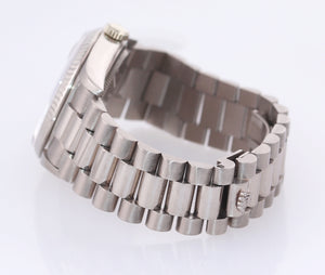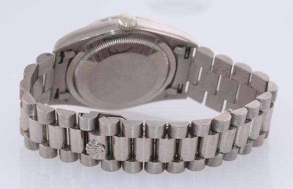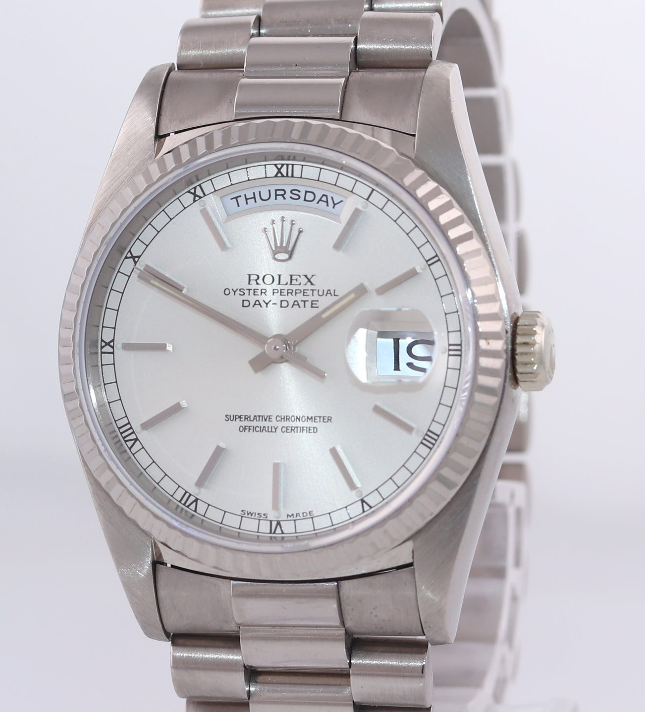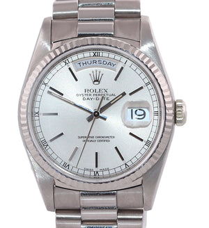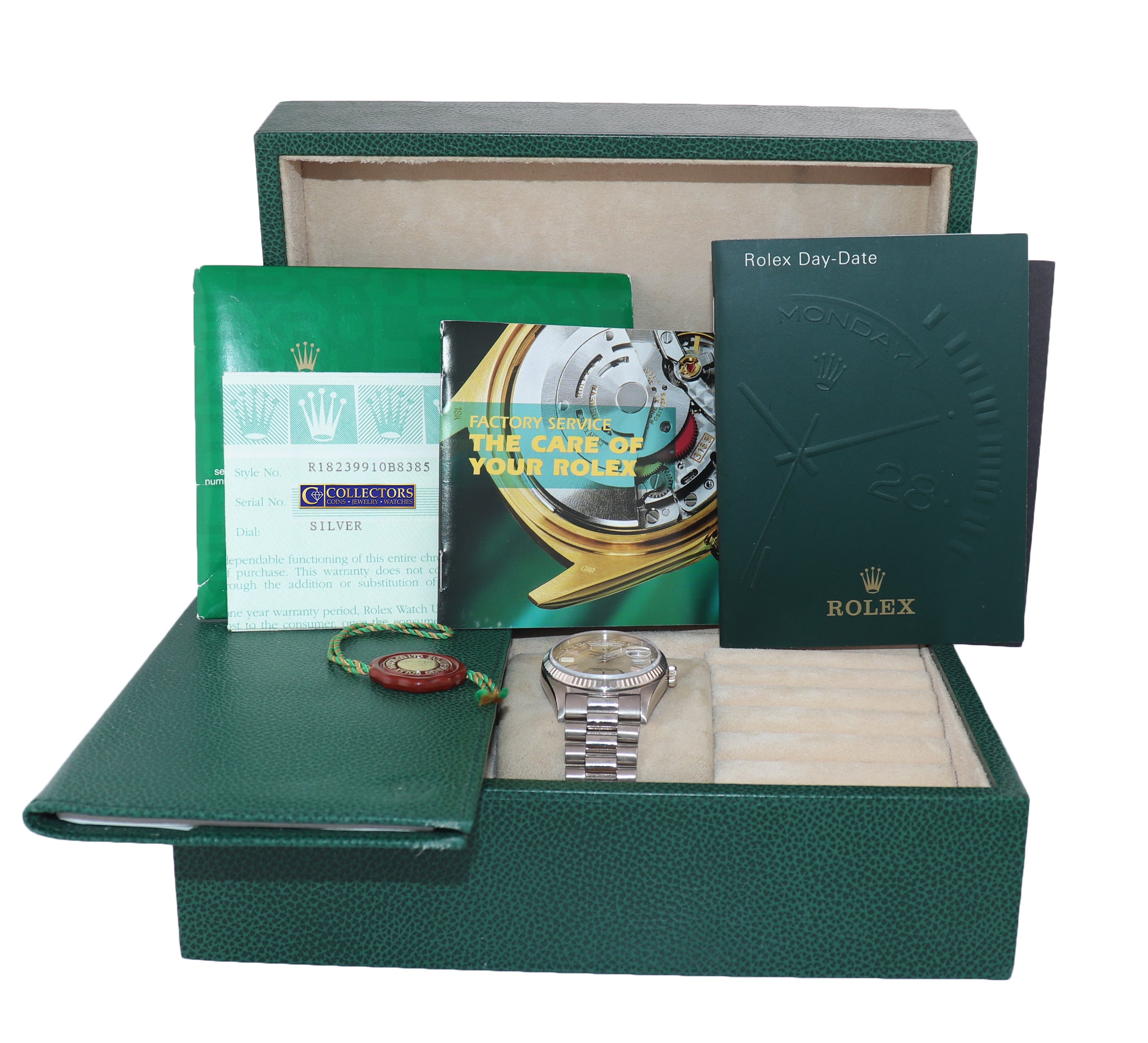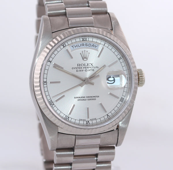 PAPERS Rolex Day-Date President 18239 18K White Gold Silver Stick Watch