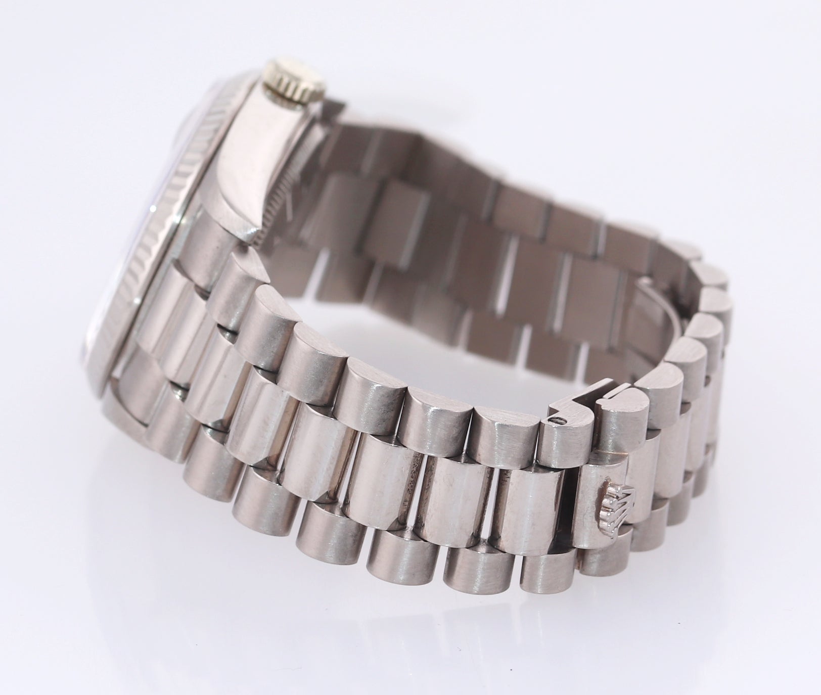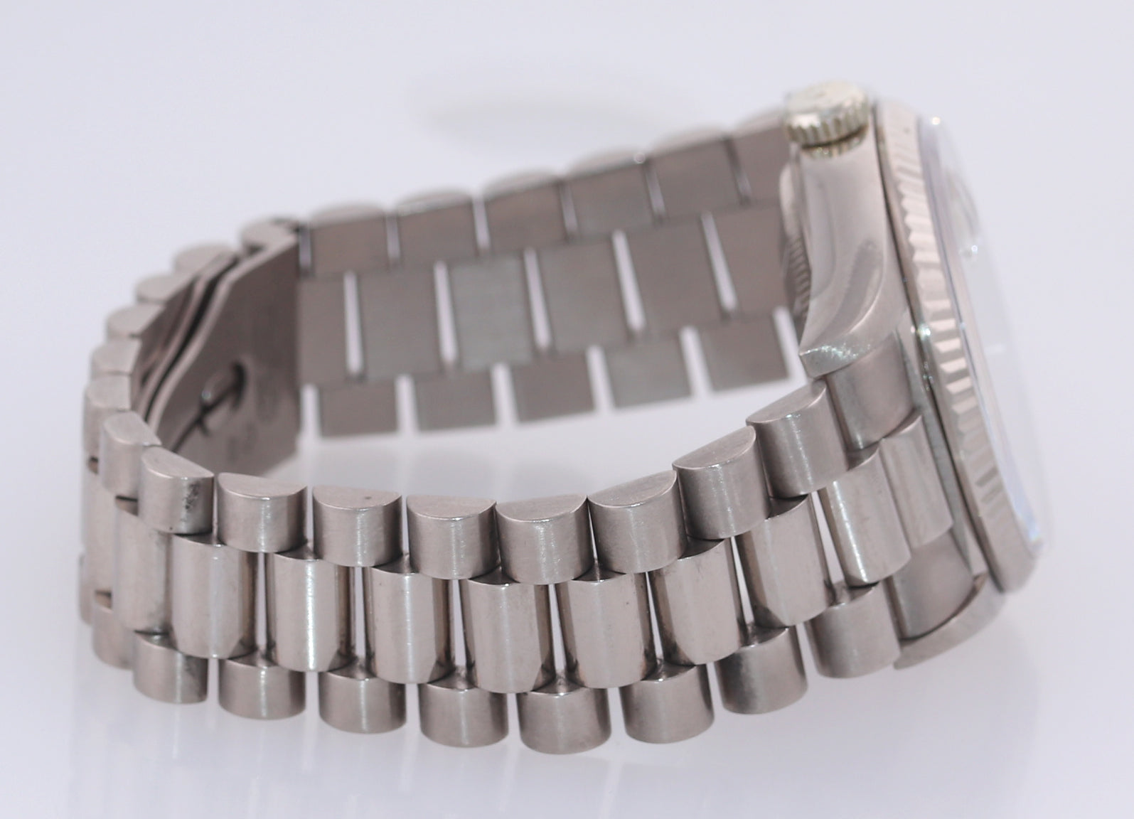 | Band | Original Rolex 18K White Gold Presidential Link Bracelet with a Folding Crownclasp. |