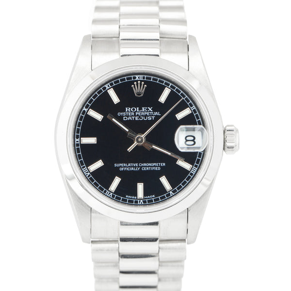 UNPOLISHED Rolex DateJust President 31mm Midsize 950 Platinum Watch 68246 B+P