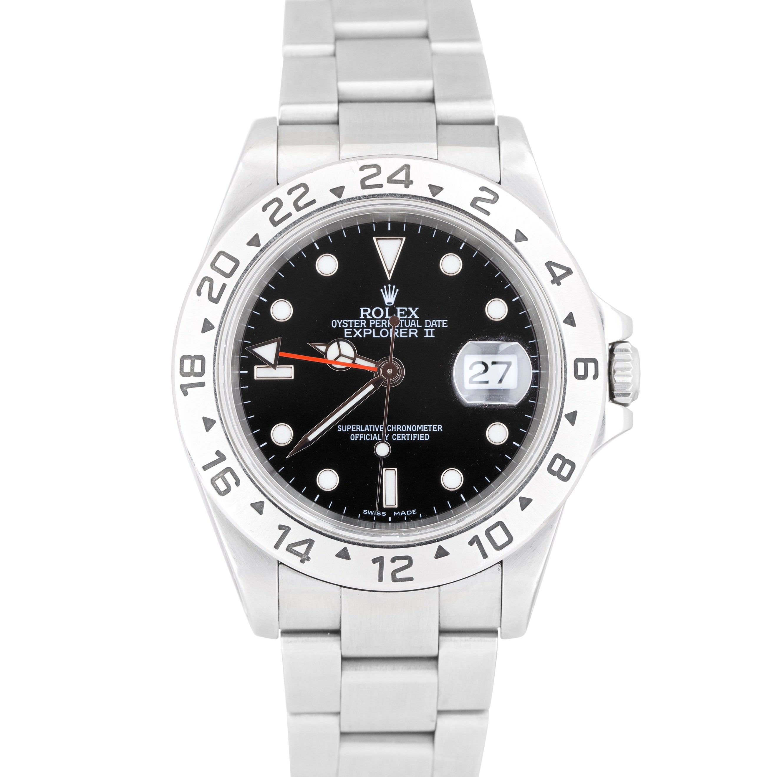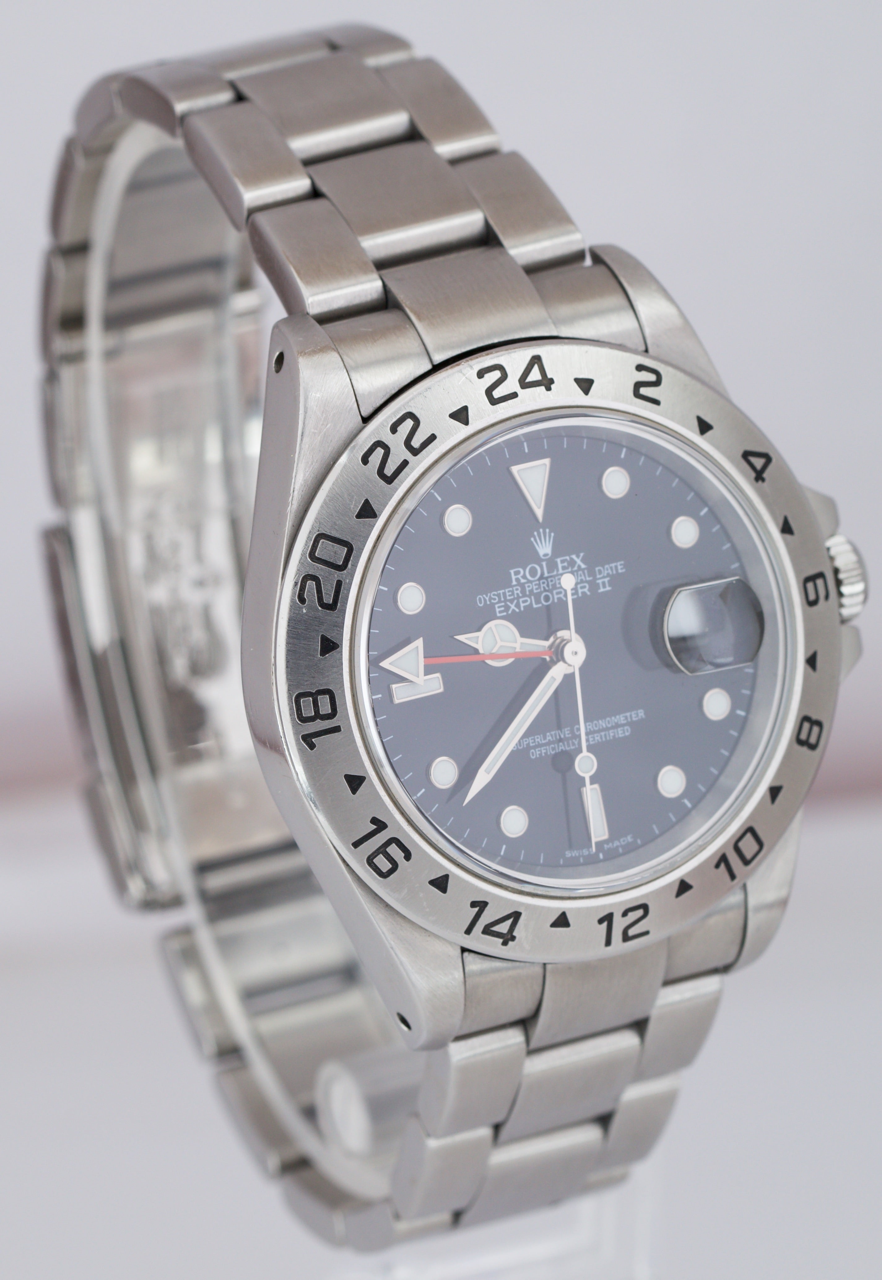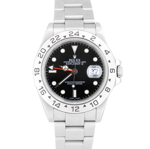 Men's 2001 Rolex Explorer II SEL Stainless Steel Black Date GMT 40mm Watch 16570