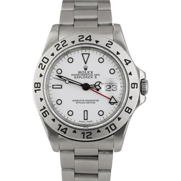 Men's Rolex Explorer II 40mm Polar White Dial Stainless Steel Lume 16570 Watch
