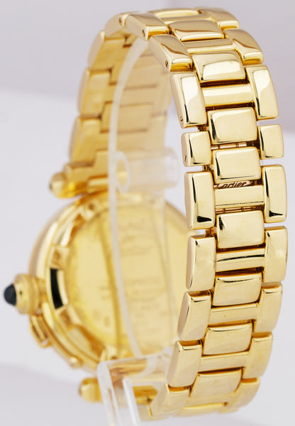MINT Cartier Pasha 18K Yellow Gold Automatic Swiss 35mm White Dial Watch 1035