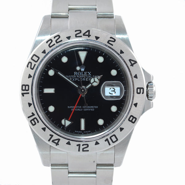 NO HOLES Rolex Explorer II 16570 Serial Stainless Steel Black Date GMT 40mm Watch & Box