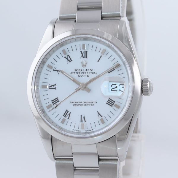Rolex Date Oyster Perpetual Stainless Steel White Stick 15200 34mm Watch