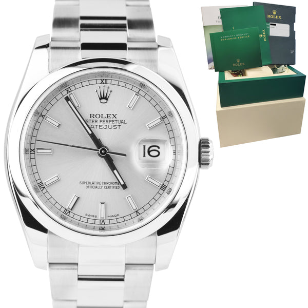 2016 MINT Rolex DateJust 36mm Silver Stick Stainless Steel Oyster Watch 116200