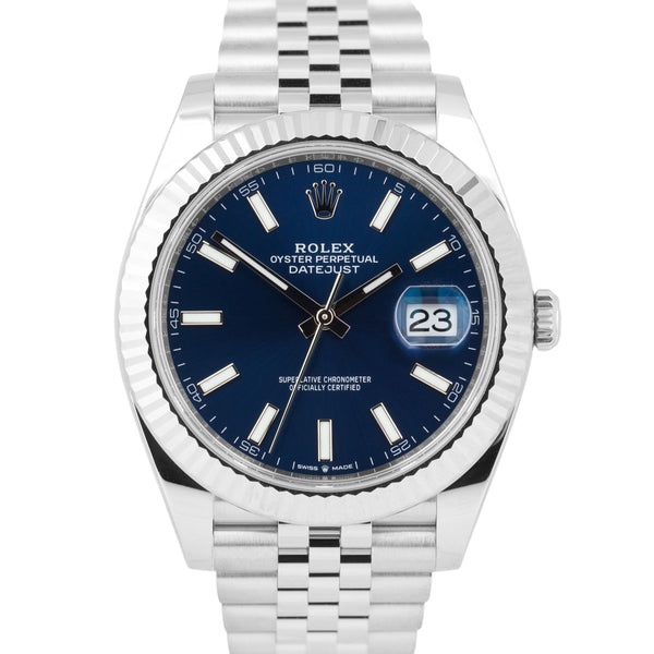MINT Rolex DateJust 41 BLUE 18K Gold Steel JUBILEE Fluted 41mm Date Watch 126334
