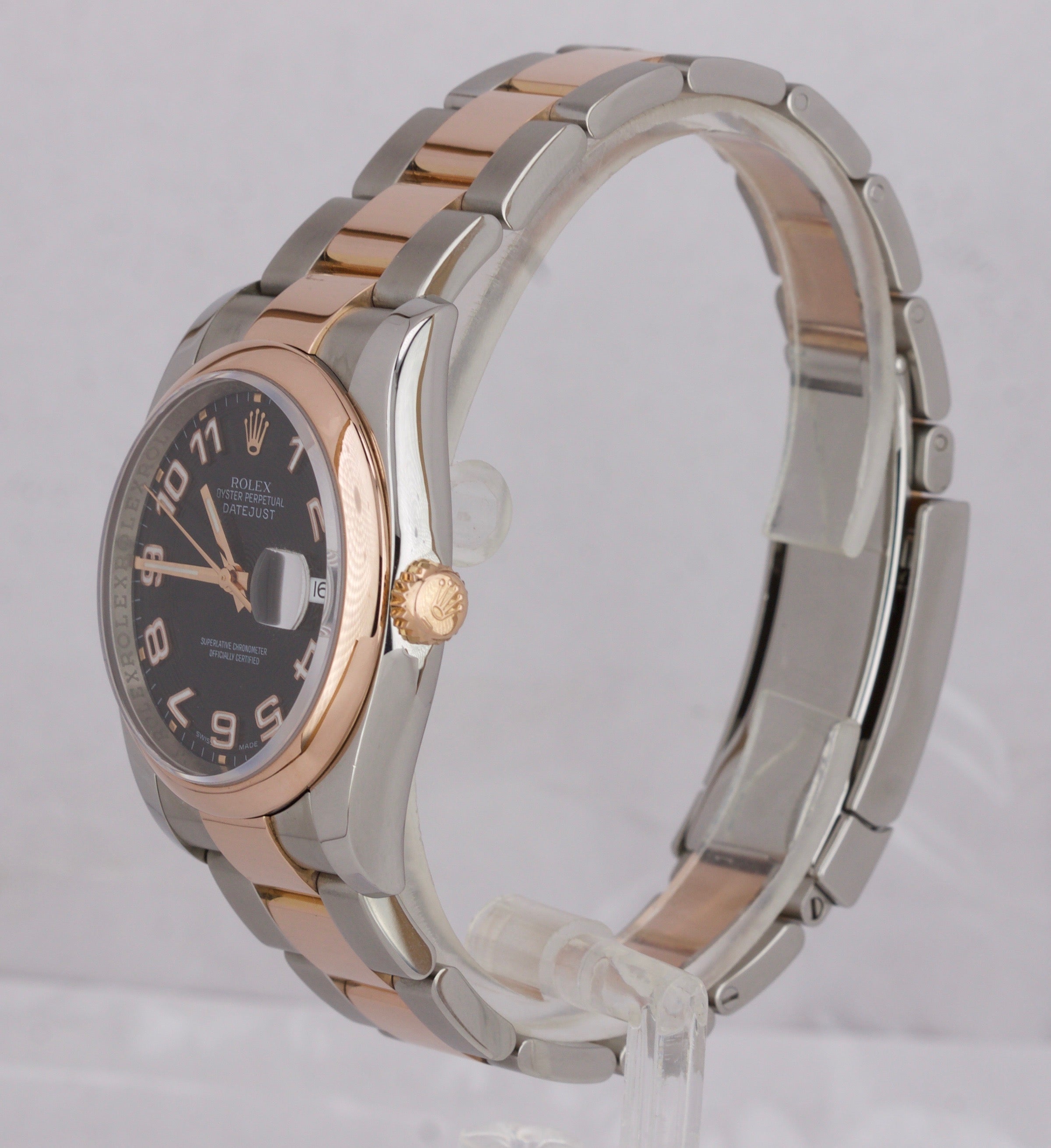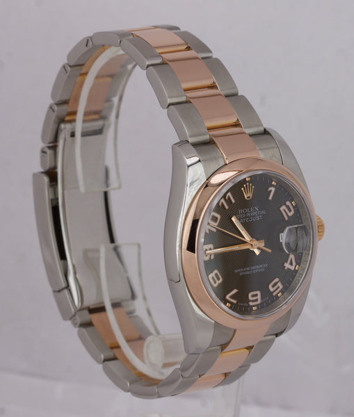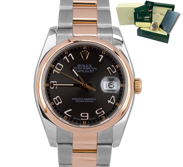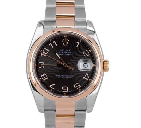 MINT Rolex DateJust Black Concentric 36mm Stainless 18K Rose Gold Watch 116201