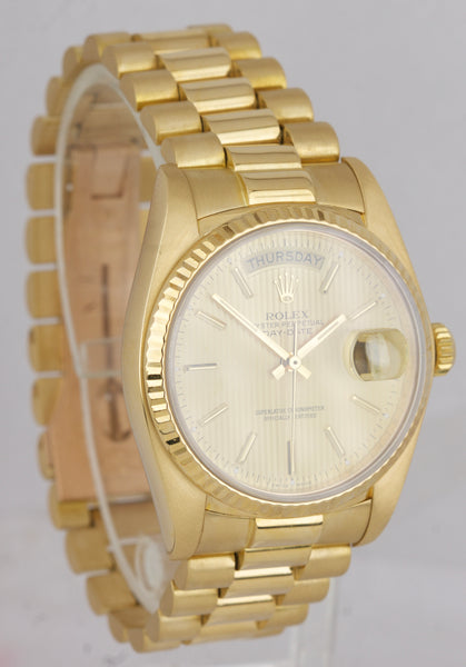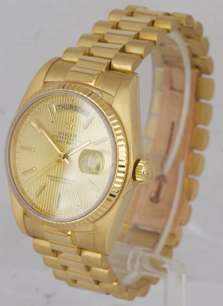 MINT Rolex Day-Date President 36 Champagne Tapestry 18K Yellow Gold Watch 18038