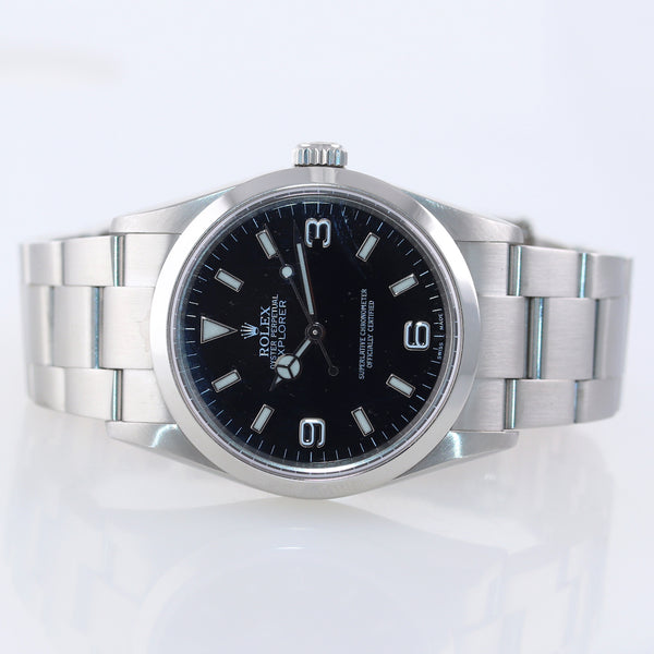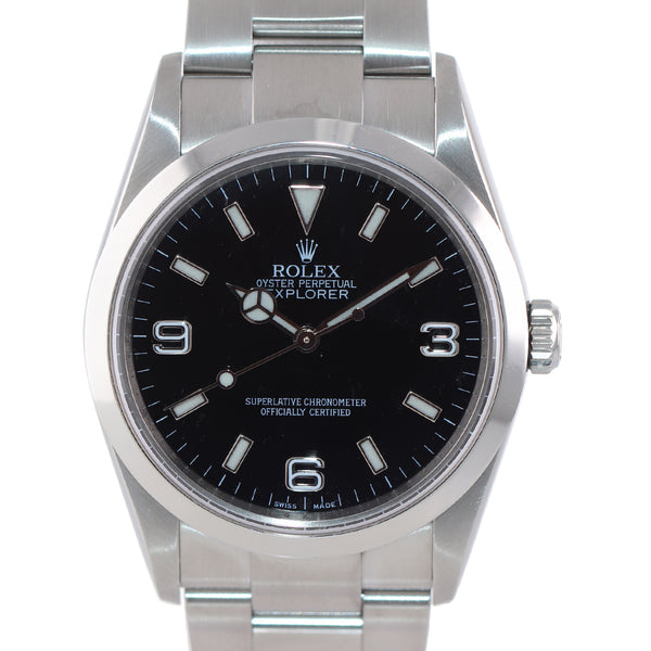 2007 PAPERS MINT Rolex Explorer I Black 36mm 14270 Steel Black Arabic Watch Boxors
