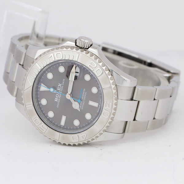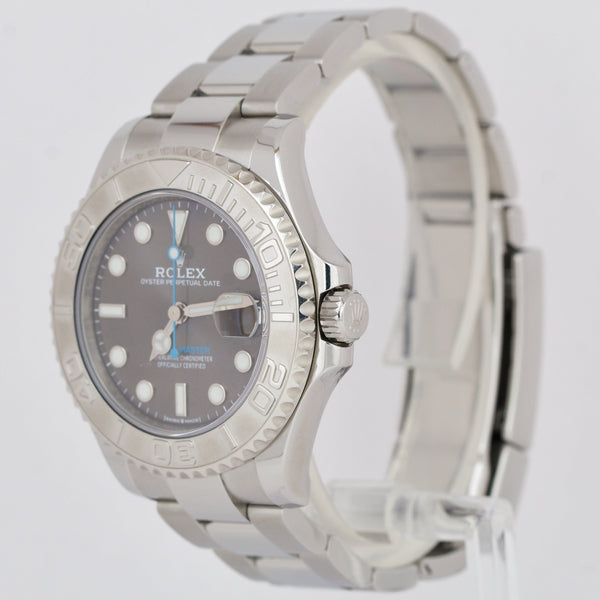 MINT Rolex Yacht-Master Midsize Steel RHODIUM Blue Gray Date 37mm Watch 268622