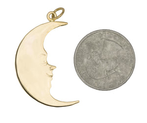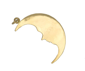 Modern Italian 18K 750 Yellow Gold Celestial Crescent Moon Face Pendant 4.1gr
