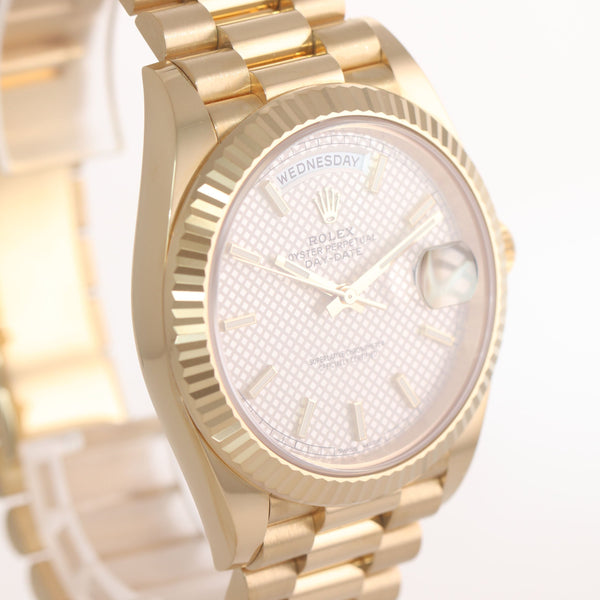 PAPERS NEW UNWORN 2019 Rolex Day-Date 40 President 228238 18k Gold Silver Motif Watch