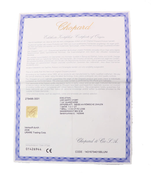 Yes, this item will include ORIGINAL Chopard papers and a Collectors Coins & Jewelry certificate of appraisal and authenticity as per buyer request. |