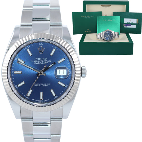 MINT 2018 Rolex DateJust 41 Blue Stick Lume Dial 126334 Steel Oyster Band 41mm Watch