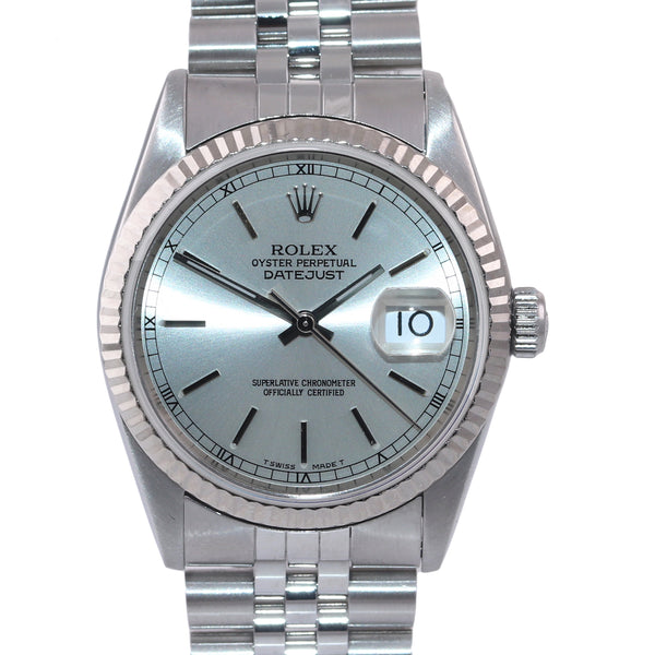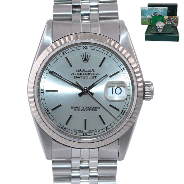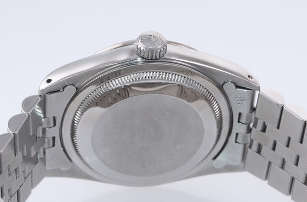 PAPERS Rolex DateJust 36mm 16234 Steel Silver Stick Jubilee 18k Fluted Bezel Watch