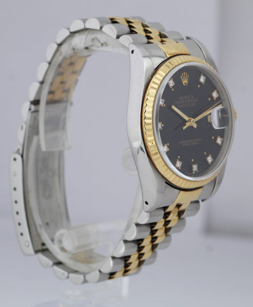 RARE Rolex DateJust 36mm Two-Tone Black Diamond 18K Gold Steel Jubilee 16233