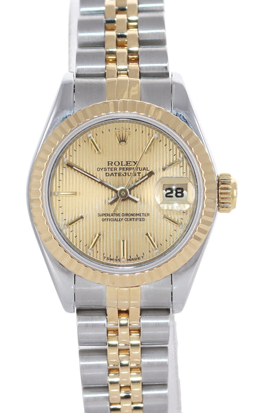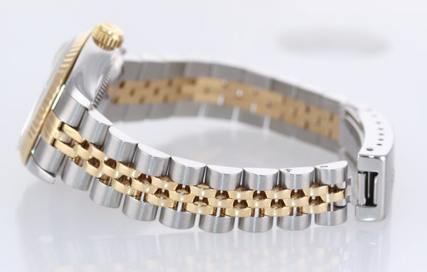 PAPERS Ladies Rolex Oyster Perpetual 69173 Two Tone 18k Gold 26mm Champagne Stick Dial Watch Box