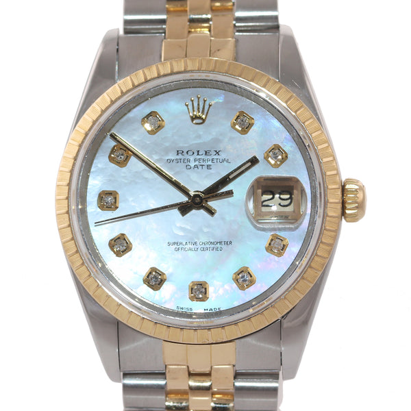 Rolex 15223 Date 18k Gold Steel MOP Diamond 34mm Two Tone Fluted Watch Box