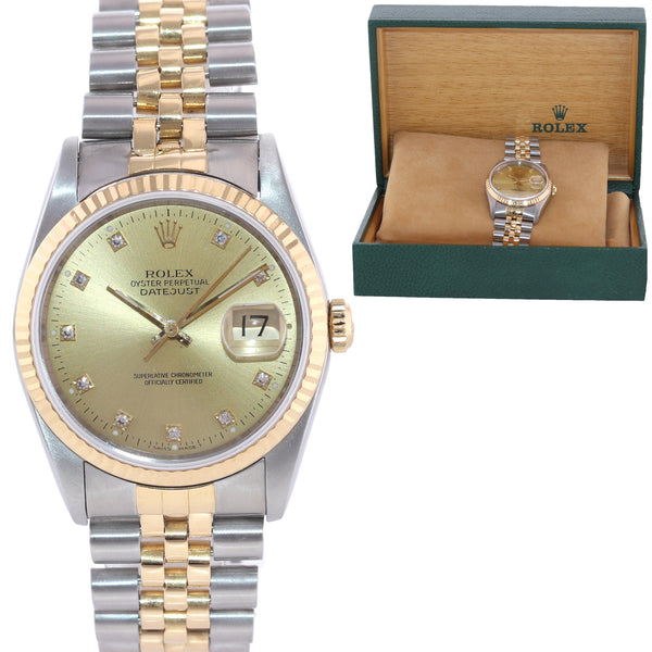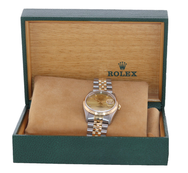 Rolex DateJust 16233 Two Tone 18k Gold 36mm Jubilee Champagne Diamond Dial Watch