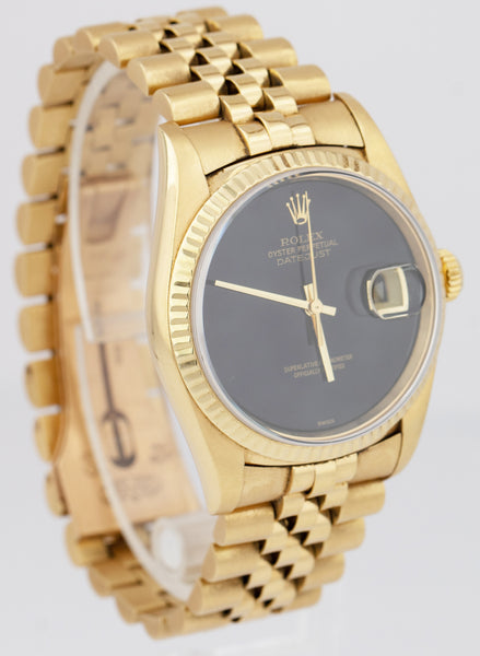 Rolex DateJust 36mm 18K Yellow Gold ONYX Black Jubilee Automatic Watch 16238
