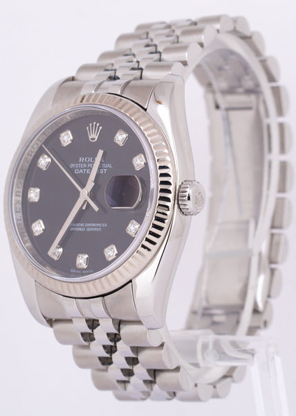 Rolex DateJust 36mm BLACK DIAMOND Steel 18K White Gold Fluted JUBILEE 116234