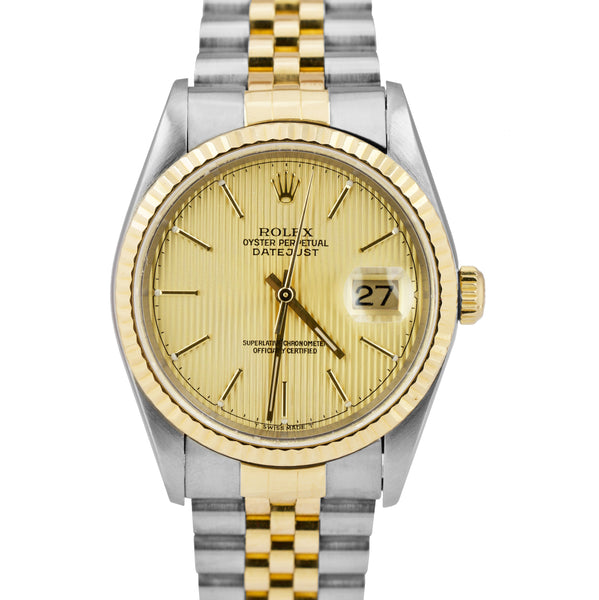 Rolex DateJust 36mm Two-Tone Champagne TAPESTRY NO HOLES Jubilee Watch 16233