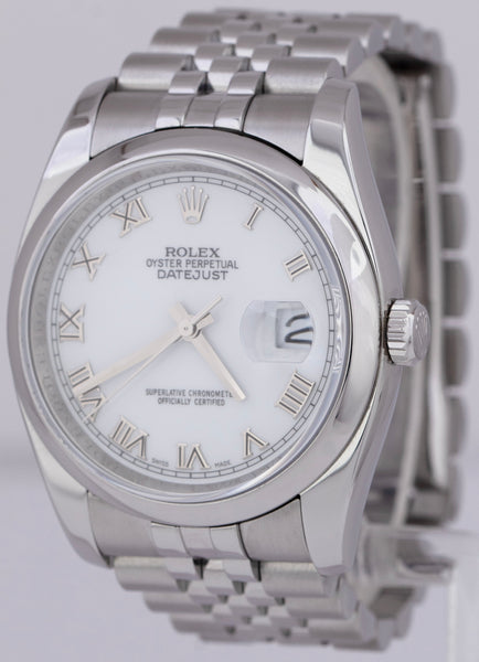 Rolex DateJust 36mm White Roman Dial Stainless Steel Jubilee Date Watch 116200