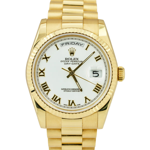 Rolex Day-Date President REHAUT BIG Buckle 36mm 18K Gold White Watch 118238 CARD